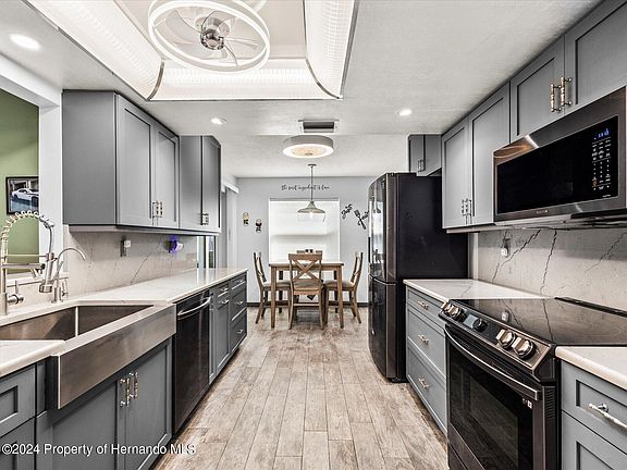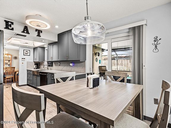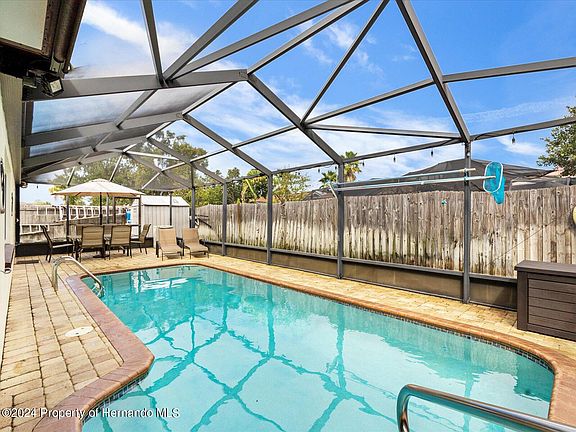 Active Under Contract - Accepting Back Up Offers Welcome to this conveniently located POOL home featuring 3 bedrooms, 2 bathrooms, and a 2-car garage. Upon entering, you'll be greeted by the CHARMING curb appeal enhanced by the paver driveway and front garden patio area, complete with wrought iron gates and a gated entry, and NEW HURRICANE IMPACT WINDOWS!! Continue through the bright and open living room to a Newly Renovated Kitchen, featuring modern wood cabinets, soft-close drawers, GRANITE countertops and backsplash, and STAINLESS-STEEL appliances. The layout includes two separate living areas divided by a dining room, perfect for formal living and entertainment. The family room opens to the SCREENED POOL LANAI with pillow-top PAVERS, creating a seamless indoor-outdoor living experience, ideal for gatherings and relaxation. Step outside to discover the fenced backyard, offering privacy. The two-car garage is equipped with a mini-split system to keep it cool year-round. Conveniently located close to restaurants, shopping, and entertainment, with easy access to the Suncoast Parkway for a stress-free commute to Tampa Bay Airport and surrounding areas. Don't miss the opportunity.