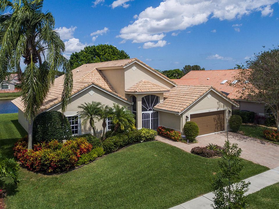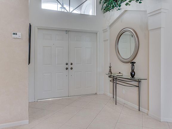 This immaculate, waterfront Brentwood model boasts an open floorplan, great for entertaining. Entering this designer decorated home you will notice the attention to details. Custom kitchen with adjustable cabinetry, pull out shelves and a large pantry. Spacious master suite features large closets, dual sinks, Roman tub and a makeup vanity. Glass enclosed Florida room with a stunning lake view. This home also boasts a sunken bar with granite countertops, tile laid on the diagonal, security system with motion detectors, vaulted ceilings, accordion shutters and surround sound in the family room. A/C is 5 years old and has an ultraviolet light. Lakeridge Falls has an active clubhouse with a heated resort style pool, ballroom, fitness center and card rooms. Country Club living without the fees.