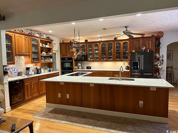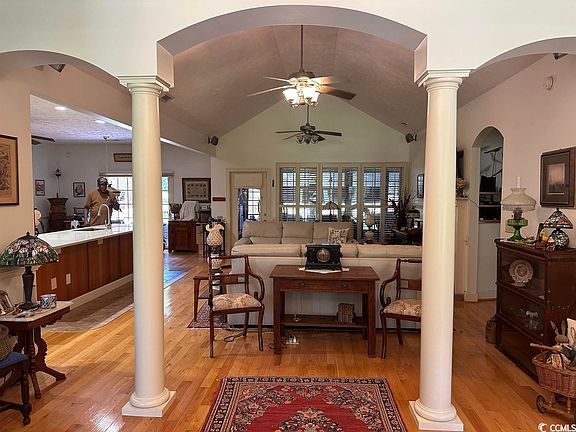 Country living at its best! Come check out this stunning 3 bedroom, 2.5 bath, 2,400 sq ft, custom built all-brick home. It has a beautiful view of the Pineland Country Club Golf Course and is situated on one acre lot with an adjoining one acre vacant lot suitable for building. This move-in-ready home has an open floor plan with a huge kitchen and walk-in pantry, state-of-the-art appliances, a huge island with quartz countertops and two built-in ovens. Other features include a wet bar with Haier wine cooler, a Carolina room with a fireplace fueled with propane logs, a central vacuum system, tankless water heater, plantation shutters, all hardwood floors throughout and tiles in the bathrooms. Sprinkler system is on a well. The spacious master bedroom has double tray ceilings, with a huge master bathroom with dual vanity sinks, an abundance of cabinets and a large walk-in shower, and decorative tile flooring. The secondary bedrooms are located on the other side of the home and share a bathroom. Laundry room has lots of cabinets and counter space. Refrigerator, washer, dryer and all appliances will convey, except for the freezer in the garage. Fridge in the garage also stays. In addition to the oversized attached 2-car garage, there is a detached garage that can accommodate one car and a golf cart. Both garages have a floored attic with a lot of storage space. Home is located one hour from North Myrtle Beach and 45 minutes from Florence, SC.