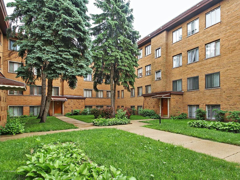 Wow, be ready to be blown away by the size & layout! High first floor corner unit with lots of light. Newly finished hardwood floors, recessed lighting, crown molding, freshly painted, new kitchen - floors cabinets, quartz countertops & breakfast bar, ss (slate) appliances plus new washer & dryer. But that's not all - Large master BR with 2 double closets, 2nd bedroom w/ a murphy bed. Updated bathroom with new floors, vanity & light - beautiful! Additional laundry & storage in basement. Near the Lake, downtown Evanston & a short walk to the Howard El station. Heat air conditioning included in assmt, plus low taxes - don't wait to long to see this beauty.