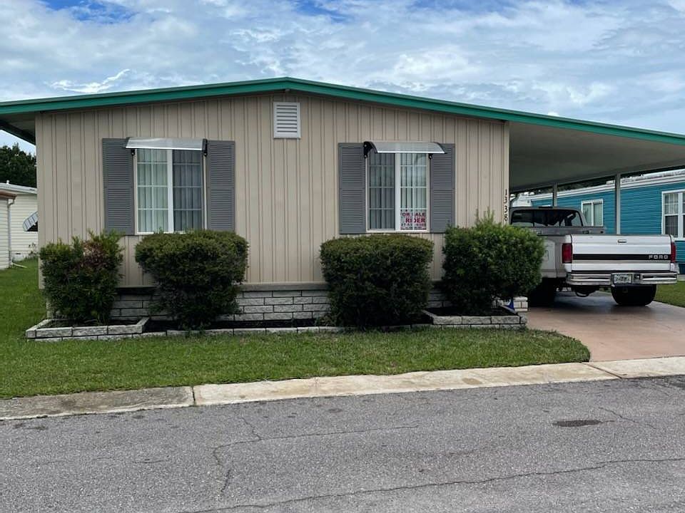 Welcome to Bay Ranch where an 18 yr old may reside along with an a 55+ resident. A low lot rent ($650/mo base) community that offers many amenities. One of the few parks that provides a designated area to store your RV, jet skis, boat etc. Community cluhouse with pool and many amenities and activities for the residents. THIS IS A PREMIER GATED PARK Thie home is a huge 24x48 doublewide that has been updated with custom tiled bath, new vinyl and carpet thru out the home. Large work shed, carport and walk in showers. Come see it before its sold. Ask for Evie Caporaletti