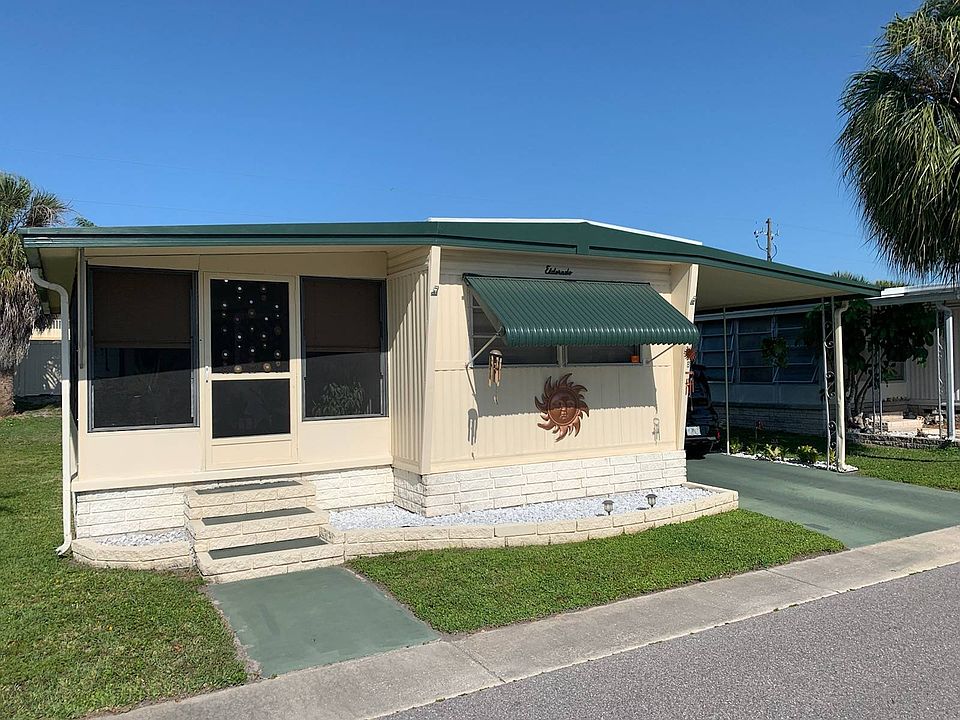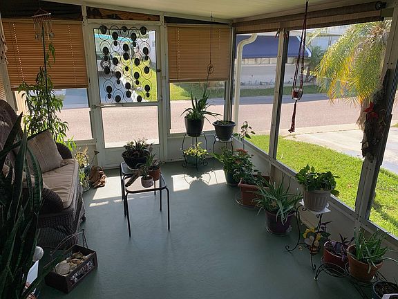 AN AGE 18+ YR OLD MAY RESIDE HERE WITH AN AGE 55+ resident. Lovely 1 brm 1 bath with a large attached screened porch. CENTRAL HEAT AND A/C system. Newer 2018 roof with 15 yr warranty. Range, refrigerator, washer and hookup for a dryer. Owner lust upgraded with vinyl and ceramic flooring. Up to a 40 lb dog permitted. Welcome to a famed premier GATED park with clubhouse complex, swimming pool, and activities and amenities. One of the very few parks you can store a boat, RV, jet skis etc.
