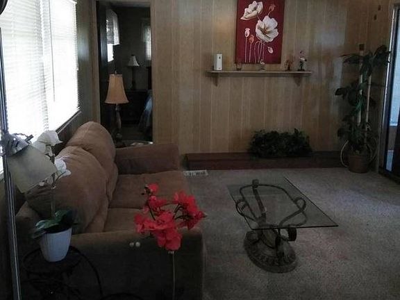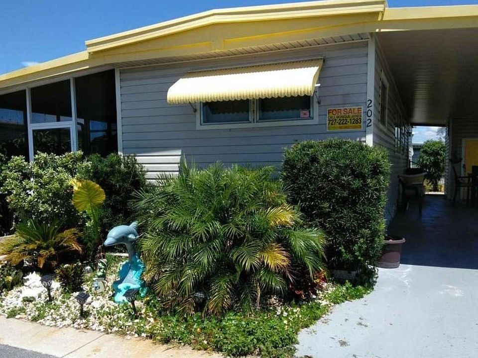 Spacious, Furnished 2 Bedroom, 1.5 Bathroom Home. Bay Ranch an age restricted community, 55+, no pets allowed in this section. Furnished open concept, 852 Square Foot total living area, 2 bedrooms 1.5 baths with roof over. The raised Florida room and living room are separated by sliding glass doors, doubling your living room space. A cozy screened in patio and a relaxing back patio with a waterfall are yours to enjoy as well. Behind the 2 car carport is your shed with a less than a year old washer and dryer. This is a spacious home with split bedrooms for privacy. The kitchen has a dining area which is furnished with a bistro set, a pantry and lots of storage. The Central AC/Heat, including in the Florida room, plus ceiling fans in the bedrooms and living area keep your home nice and cool in the summer. The AC was just serviced with fresh Freon, and has a brand new universal motor with warranty! There is laminate flooring in the second bedroom. The living room, Florida room and master are carpeted, while the kitchen, hall and bathrooms have vinyl flooring for easy cleaning. This home has seen some updates, such as louvred closet doors in the master. In the master you can rest easy on a new cool gel memory foam mattress on top of your full sized bed. There are two built-in closets and a dresser. The second bedroom is furnished with a queen bed room suite and has its own private half bath. In the living room you can relax on your sofa or your black leather recliner with ottoman. While the furnished Florida room includes a futon to give you extra space for your guests. Instant Benefits are Roof Over, NEW November 2017 Washer & Dryer, NEW August 2018 Evaporator Motor & Capacitor, and NEW November 2017 Gel Memory Foam Mattress Set in the Master. Terms: Cash Only, Owner Financing Not Available. The lot rent of $557 includes lawn care, water, sewer and trash. Pets are NOT allowed in this section of the park. Bay Ranch, a secure 55+ community, is just a few miles from our dreamy beaches, offers a heated swimming pool, Free Wi-Fi, easy access to Largo Mall and plenty to enjoy nearby. The park offers a variety of activities or just lounge around the heated pool savoring a cool dip on a sunny day. The recreation center offers an assortment of activities to interact with your neighbors. Please note that Florida mobile home communities require a background and credit check. Application fees vary by park.