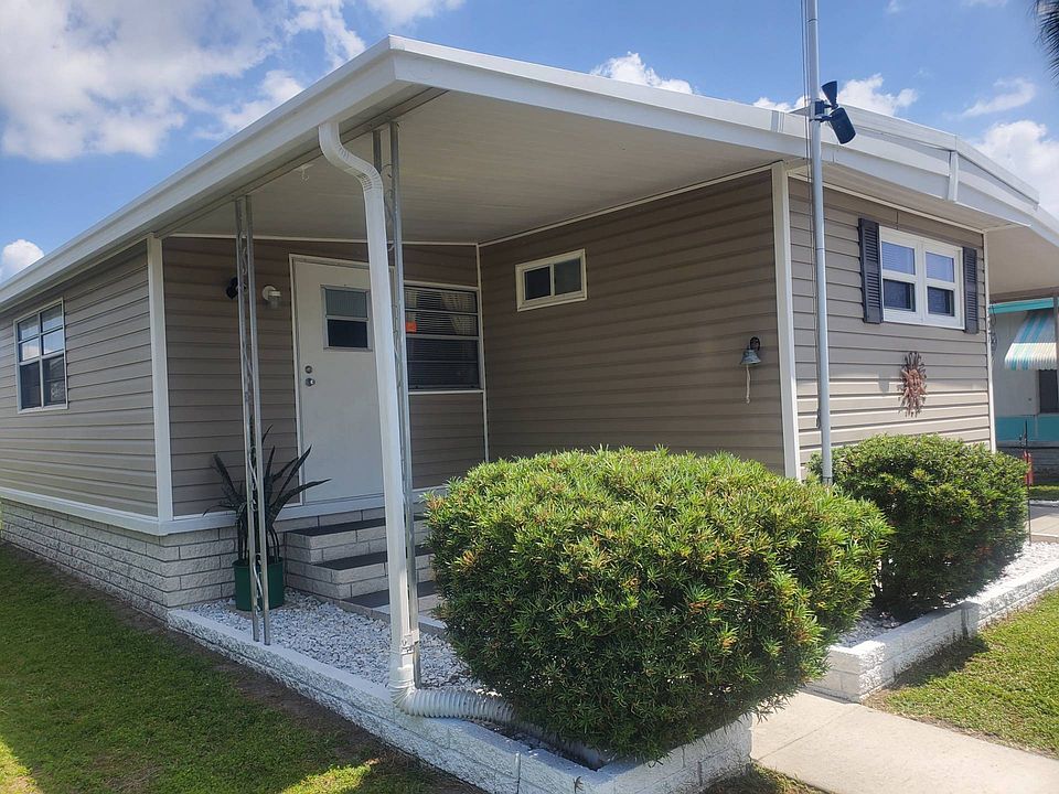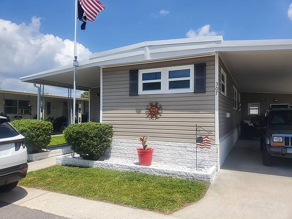 Welcome to this lovely mobile home in a wonderful 55 and up community. 2nd applicant can be 21 and up. Great for college kids still at home. This home has brand new vinyl siding put on a year ago. ($7,000). Updated windows and roof over roof. Step inside to a Florida/bonus room. Nice plush carpeting throughout. Futon and TV will stay and all decor on the walls. Very nice nautical themed decor. Living area is very open and bright. Berber carpet in living area. Both recliners will stay. Kitchen has tons of cabinets and counterspace. Portable island will stay. This home has a split floor plan with bedrooms on each end of home. Guest bedroom is beyond living area. ( currently used as office) This room can hold a full size bed. There is a full bathroom with walk in shower. Walk down the hall to your main bathroom with a large vanity and updated tub. Plenty of space for all your toiletries. Master bedroom is at the end of hall. This room can easily hold a queen bed. ( bed goes with seller) Plenty of closetspace too!! Washer and dryer will also stay! This home has a nice outdoor patio area and lots of green space. This is not in pet section, but indoor cat ok or therapy/service dog is ok. Park has nice pool, clubhouse, shuffleboard courts. Lot fee is $645 per month. CONTACT GAIL TODAY!! We treasure our reputation and it is important to us that all the information, the seller has provided, is always passed on to the buyer. The information in this listing is believed to be true and accurate. We ask that the buyer always inspect any home they wish to purchase. We cannot guarantee or warrant the accuracy of this information or the condition of any property. The buyer assumes full responsibility for obtaining all current rates of lot rent, fees, or pass-on costs associated with the mobile home community, park, or home from the park manager. We are not responsible for quoting of square footage.