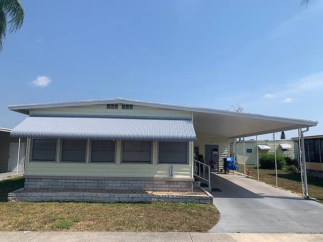 This home is listed for SALE by Carol with SLR Mobile Homes. The lot rent for this home is $677.00 per month and includes water, sewer, trash, lawn mowing and all of the park amenities. Motorcycles are permitted in this community. This home is located in a Pet Friendly (INDOOR CAT ONLY (Sorry)), 55+ Age Required Retirement Community (18+ year old can live in the park if the primary resident is 55+). This furnished home has 2 bedrooms, 1 1/2 bathrooms, 5/8" marine plywood subfloors, waterproof vinyl flooring, carpet in bedrooms and living room, roof over, new plumbing under the kitchen sink and much more. The living room has carpet, large windows, and the accent wall is rough cut treated planks. The dining room has waterproof vinyl flooring, large window and will seat at least 4 adults comfortably. The kitchen has new plumbing under the sink, new cabinet doors, pantry, newer appliances including a low-profile microwave that is mounted under a cabinet. The guest bedroom has carpet, ceiling fan, large window and 2 closets. The guest bathroom has a new vanity with storage, new hardware, new toilet, new lighting and a tub/shower combination. The main bedroom has carpet, large window, ceiling fan, 3 closets and direct access to the 1/2 bathroom. The main 1/2 bathroom has a new vanity with storage, new lighting, new faucet and a new toilet. The Florida room is accessible from the living room with plenty of big windows to let in our beautiful Florida sunshine and plenty of room to use as a Family room or whatever you want it to be. Just off of the carport is the extra-large shed with a stackable washer and dryer, built in shelving and is perfect for the handy person / gardener in your life (sorry the tools and toolboxes do not stay with the home. On the other side of the shed is a quiet covered patio a great spot to enjoy your morning coffee/tea or to have your favorite evening beverage with friends/family. This is a great home in a great community. For more information, to schedule a showing or to make an offer, please call Carol today. Bay Ranch is a Beautiful 55-Plus (18+ year old can live in the park if the primary resident is 55+) Park centrally located, close to restaurants, shopping the St. Pete Airport and the beaches! Amenities include a heated pool, shuffleboard, horseshoes, gym and a Clubhouse with numerous activities. R.V. and Boat Storage lot in the park available to homeowners, you can store either an R.V. or a boat (not both). ***DISCLAIMER: The information in this listing is believed to be true and accurate and has been provided by the seller. SLR Mobile Home Sales, LLC cannot guarantee or warrant the accuracy of this information or the condition of any property. Since Mobile Homes are sold AS IS, we recommend that you inspect any home that you are interested in purchasing and recommend that it be independently verified by appropriate professionals. The buyer assumes full responsibility for obtaining all current rates of lot rent, lot rent payment method, lot rent due dates, fees associated with the mobile home community, park, or home from the community/park manager. Buyer is also responsible for getting any park rules, regulations and lease agreements from the community/park manager. SLR Mobile Home Sales, LLC is not responsible for the quoting of or providing of said fees, requirements or documents.
