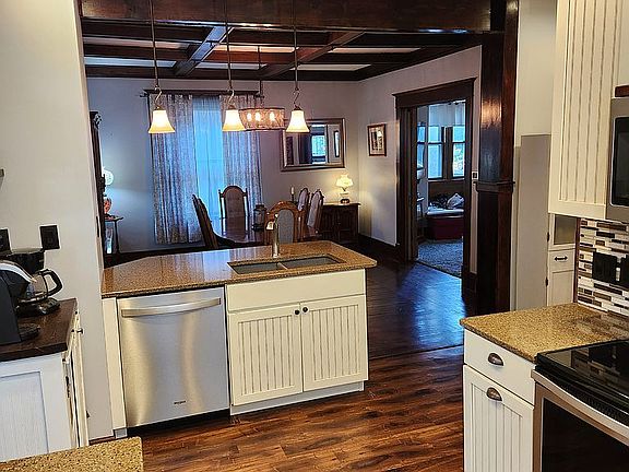 Beautiful 5 bedroom 1.5 bath colonial home. Open concept kithen/dining room, ideal for entertaining. Inviting large front porch, fenced yard and 2 car detached garage. Spacious bedrooms with 4 up, one bonus room down. Smallest upper bedroom converted into a laundry/dressing room, but could be converted back. Dual stairways to the upper level, unfinished floored walk up attic. Full height unfinished basement. Come see! $123,900 735 7th Ave South, Clinton, IA