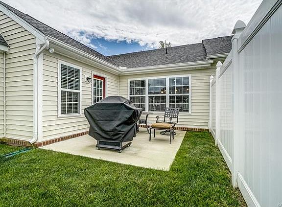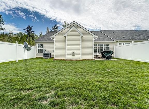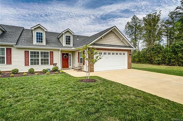 Pristine end unit carriage home with multiple upgrades including hardwood floors throughout, vaulted ceilings, 2 car garage with painted walls and floor, deep sink, LED lights, plantation blinds, light dimmers, upgraded internet service, upgraded 15 seer Carrier Heat pump, upgraded bathroom exhaust fans, remote control gas fireplace, built in book shelves, enlarged marble master bathroom shower with glass door and ALL appliances convey. This is a super nice home and a great community with pool, clubhouse, exercise room, trash and snow removal and best of all NO GRASS CUTTING. Maintenance free community that's close to Food Lion, restaurants and 15 minutes to Mechanicsville.