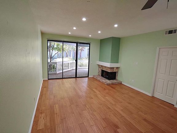 Enjoy the convenience of walking to shops and restaurants in this sought-after Sycamore Creek condo with gorgeous water features and lush gardens! Privately located, this ground floor single-story 2BR/2BA condo offers light-filled rooms and an open floor plan. The spacious living room and primary bedroom extend to a covered patio overlooking professionally maintained grounds with mature trees, lush greenery and babbling creek meandering through the courtyard with ponds and soothing waterfalls. A truly unique setting allows you to delight in the koi, birds, crayfish and seasonal ducklings that thrive in the natural habitat. If you're lucky you might even see the occasional Blue Heron! Wood floors and a cozy gas fireplace with marble hearth highlight the living room and dining area. The updated galley kitchen features a garden window, stainless steel appliances, recessed lighting, breakfast bar plus ample cabinetry. The spacious master has sliding glass doors which brings in lots of natural light, and features wood floors, a custom walk-in closet and ensuite with walk-in shower. With plenty of room for sleep, study and storage, the guest bedroom is adjacent to a full bath with a shower-tub combo. Other amenities include 2-car detached garage with bonus storage loft, work bench and shelving plus a private laundry room. Must See! 12 to 18 month lease with option to renew. No smoking in unit or common areas. Renter's Insurance required. HOA fee and trash included in rent. $200 Deposit for pets + $50/month pet rent