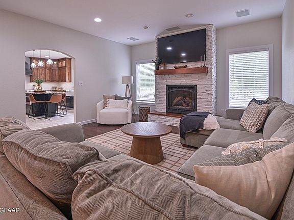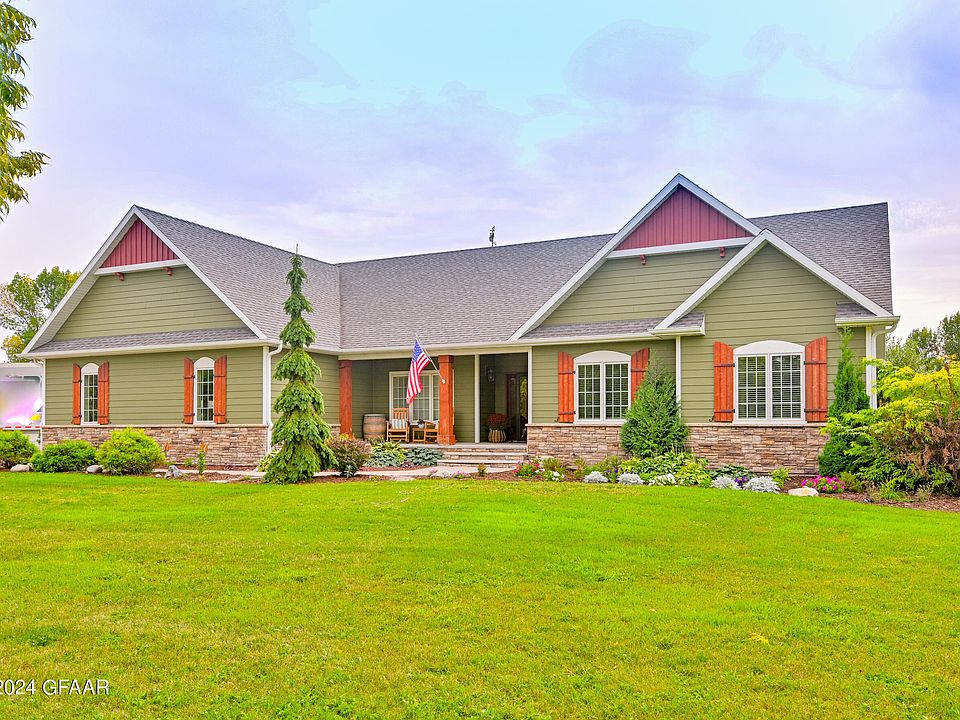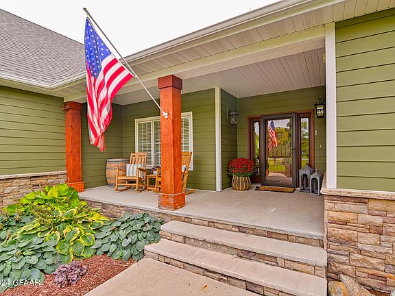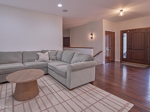 This stunning custom built home just outside of Grand Forks city limits features 6 bedrooms and 3 full baths with lots of high-end finishes. Primary bedroom and ensuite plus two other spacious bedrooms and full bath on the main floor. The living and dining room areas have beautiful, engineered hardwood flooring plus a stone gas fireplace. The kitchen has everything you need and more. 6 burner gas range, double ovens, amazing drop-in sink, island, stainless steel appliances and pantry. Laundry is located off the kitchen. The finished basement offers even more living space... 3 additional bedrooms, family room, full bath, storage space and additional hook-ups for laundry. Step outside and enjoy the park-like setting with mature trees, shrubs and lovely flower beds. Front patio and back cedar deck. See this one soon and make it your forever home!