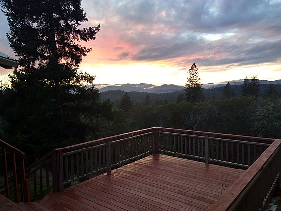 What I love most about our home-- Spectacular Mountain Views! On nearly 6 acres, this home offers one of the most peaceful and private settings that you will ever find and still only 4 miles from Grants Pass. House updated with new metal roof, new windows, new kitchen cabinets, granite countertops, hardwood flooring, new decking. Really nice walk-in master shower. Pond with soothing sounds of the waterfall. Hot tub. Detached two-car garage with auto openers. Fenced in orchard that doubles as a chicken yard. Ready made garden with raised beds. New well pump and line that provides 20 gallons per minute of the best drinking water which I've ever had. Oh yes, a very unique penny floor in 1 of the 3 bathrooms. This is a very unique home, our paradise on Earth...we now need to move to a one level home due to health. Owner financing available with minimum 10% down. Please note: for whatever reason on this ad if you push "call agent" it will redirect you to some random realtor. I have called Zillow about this and ask them to correct it because this is a for sale by owner. If you wish to see the home please call me Direct at 541-761-4427. Thanks! Fred All offers considered.