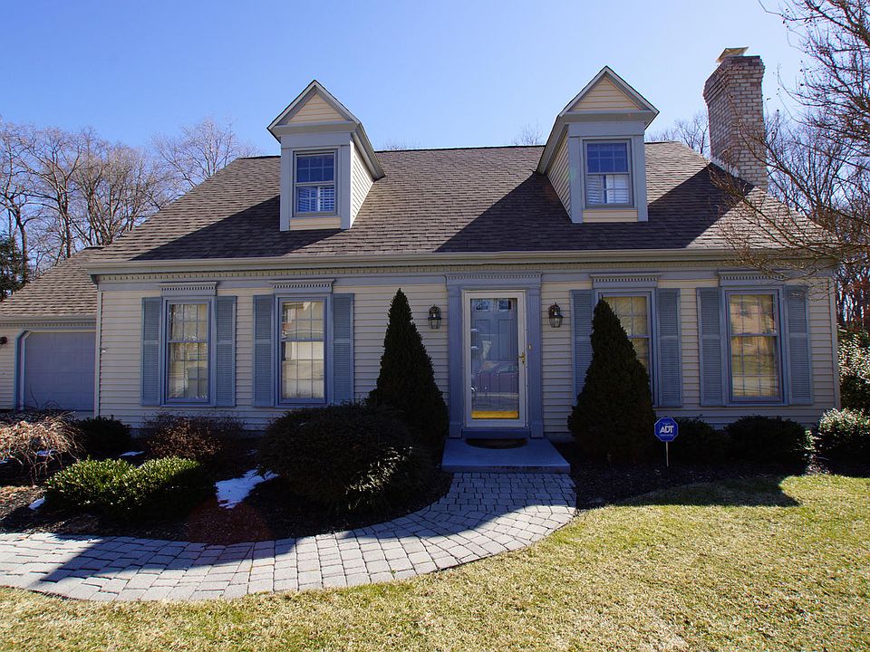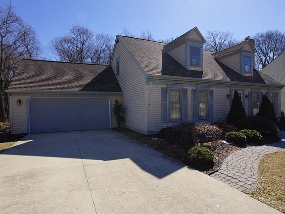 R-11738 Beautiful Cape Cod on just over a half acre backing to woods. Contemporary floorplan with large living room with a fireplace that joins the formal dining area. The eat in kitchen features stainless appliances, skylight and a large pantry / laundry room. Sliding doors lead from the kitchen to the heated sunroom. Large enough for a sitting and dining area. Open the sliders and use it as a screened porch when weather permits. The master bedroom and bedroom number two are on the first floor. Bedroom two has built in shelving and is currently used as an office space. It could easily be returned to a bedroom or possible nursery. The second floor has two bedrooms split by a full bath. This home is decorated in popular grey and white colors with matching laminate flooring on most of the first floor. This home was also built with a two car garage, as most of the Cape Cods in this neighborhood were built with a single.