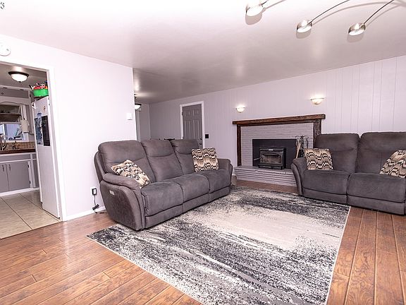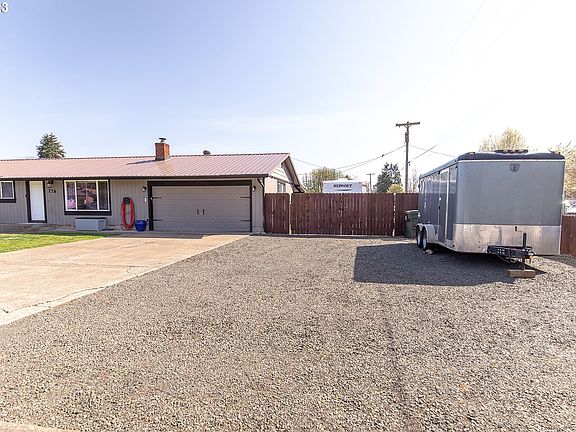 Large corner lot with 3 Bedrooms, 1 Bath, Living Room with Laminate floors, Woodstove. Kitchen tile counter tops with lots of counter space, Garden window. Bedrooms have wood floors & Ceiling Fans. Large fenced backyard, with a Covered Patio, new 12x12 Shed with Attic space, RV Parking behind Fence and in front of fence, Garden area, Green House. Oversize Garage. Metal Roof, new interior/exterior paint. Well water with UV light and sand filter. Short walk to kids park.