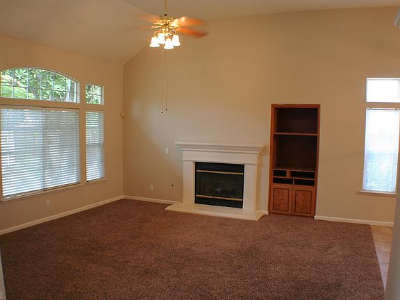 Ready to move in! Freshly painted interior, spacious living room w/fireplace, open kitchen features an island w/breakfast bar, sink and dishwasher, stainless steel gas range and lots of cabinets. Master suite has a vaulted ceiling, gas fireplace and slider to private patio. Master bath features double sinks, walk-in closet, large tub and shower. Inside laundry room, two covered patios with beautiful backyard, tile roof, attached garage with auto opener and potential RV parking. Call for a personal showing today.
