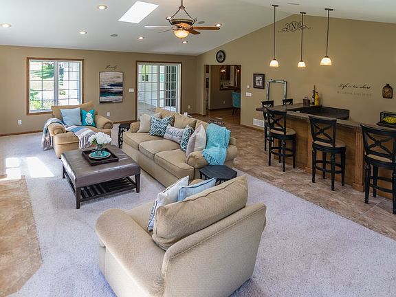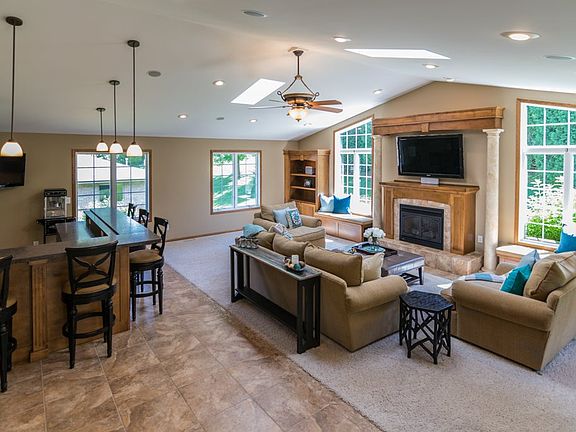 Pride in ownership rings throughout this beautiful two-story home. You will love the layout of this home that is perfect for entertaining. Homeowners added a 24x28 family room on the main floor that features a Regency gas fireplace, built-in benches w/storage, bookshelves, speakers and bar w/wine fridge & mini fridge. Custom kitchen features a large island, booth area, newer appliances, an abundance of cabinets and lots of counter space. A formal dining room is close by and there is easy access to the backyard & 12x32 covered patio off the kitchen. You will enjoy the privacy of having the master suite on the main floor while having 2 bedrooms & two baths plus a bonus room upstairs. The lower level has 2 bedrooms, 2 full baths, rec room, craft/hobby room and family room that features another fireplace. You will find lots of space in the garage--the 3rd stall is 48 ft deep which is perfect for parking a boat or camper. You'll also enjoy the convenience of stairs from the garage to the LL. Newer roof, furnace & central air. Come see for yourself all that this home has to offer.