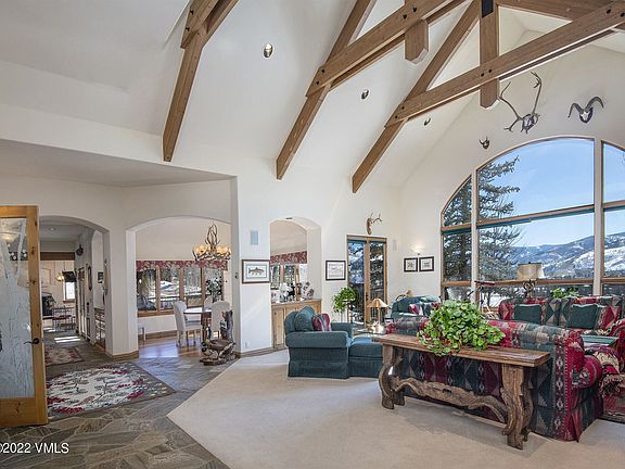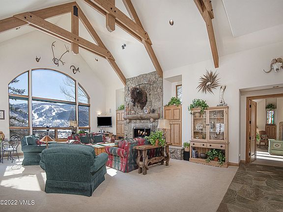 Perched High Above the 15th & 16th Fairway... with sweeping views of both Arrowhead and Game Creek Bowl!! This private, amazing home has it all with a roomy main floor master & office, plus, breakfast nook located off of the spectacular sunlit great room with vaulted ceilings opening to a spacious outdoor patio enjoying every sunset & magical rainbow!The custom kitchen has been creatively designed for food preparation and casual dining. The main floor offers an oversized 3 car garage with a doggy door, plus, ski tuning and mud room. Above the garage is a secluded suite.The lower level includes a wine room, laundry room & family room with pool table, sauna and exterior hot tub on its own private deck.Additional guest suites are situated off of the den.This charming home is a Must See!