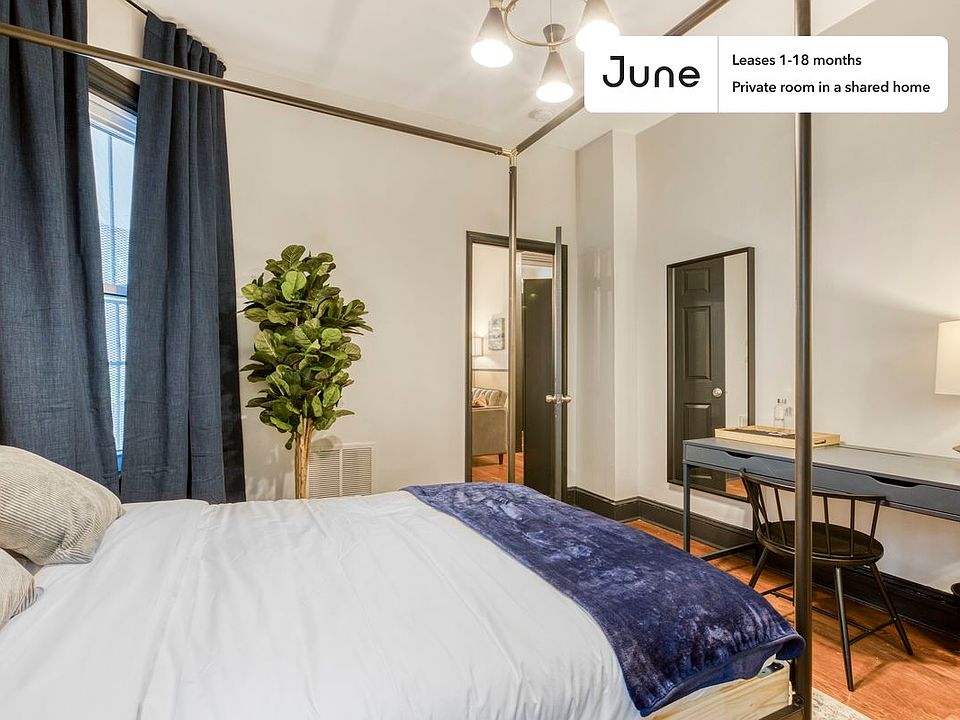 This Queen room in Columbia Heights is available on a 12 month lease or a flexible short term (31 to 364 days) lease. You pick your custom start and end date. Monthly rent rate is determined by furnishing preference, move-in date and move-out date. Speak to a June representative for recommendations on the best stay duration for the lowest rate.