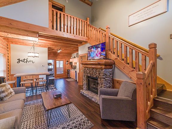A beautifully maintained log cabin that has SO MANY upgrades and improvements, it will be hard to list! Located in Golf View Resort in Pigeon Forge, it is minutes from Dollywood and all the entertainment and amenities of the area. You walk in to the main open floor plan, with living, dining and kitchen areas. The new flooring is a striking color and sets off the upscale new paint color on the walls and new furnishings throughout. Out the kitchen door is a screened porch with new furniture and a large hot tub. A utility room with washer/dryer and half bath are just off the kitchen. Go downstairs and you will find a queen bed, pullout couch, fireplace, pinball and another porch complete with grill and table. The full bath on this floor, as well as the master bath have been completely upgraded with vanities, mirrors and more. Walking upstairs from the main floor, the master suite is truly to be appreciated! It is decorated in inviting, clean colors, with a modern soaking tub, private porch, and four incredibly large log beams crossing the ceiling. The roof was replaced in 2021, and exterior stained in 2022. How lucky to find something with so much thought and care already put in!