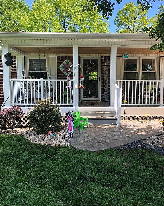 Ranch with front porch and carport! Open concept in living room and kitchen. New stamped sidewalk and front yard fenced in.