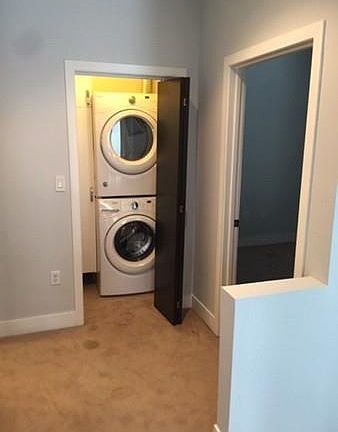Dramatic two bedroom, two bath duplex loft condominium unit with soaring ceilings, tall windows and wood floors in living area (carpet in bedrooms). Modern open kitchen with granite counters, stainless steel appliances, ample cupboard space with pull out organizers and counter seating. Spacious two story living room, adjacent study, full bath, separate dining area and open stair to bedroom level. Two generous size bedrooms, shared walk in closet with built-ins and hall closet with new stack washer and dryer. Central a/c. First floor entry to the unit from the building's common hallway and an additional private entry from the sidewalk. Unit is in very good condition, located close to BU Medical, SOWA arts district and two blocks from the Silver Line. Sorry no pets or undergrads. No Smoking. Unit is in a beautifully maintained, professionally managed building. Unit has its own property manager. Move-in condition. Available 8/1, possibly sooner.