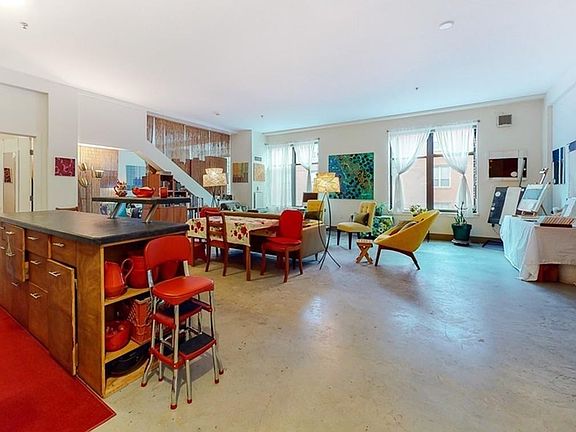 BRA REGISTERED ARTIST UNIT (see disclosure below). Rarely available artist loft in the South End of Boston close to all the galleries on Harrison Avenue in the heart of the SOWA District! Do not miss this opportunity to purchase your own home. Create your art in a sun-splashed live/work space with an excellent layout. The Art Block Condominiums built in 2006, are located at 735 Harrison Avenue. This amazing space on the 4th floor in an elevator building, consists of almost 1,000 square feet, and features soaring ceilings, tall windows, concrete floors, gas cooking, a large island with seating in the kitchen, a loft-style bedroom for privacy, abundant closet space, and an open floor plan which provides great flexibility in use of space. Enjoy this fantastic location in the South End's vibrant Arts District, with neighborhood amenities including the SOWA Open Market, First Fridays, Open Studios, Farmers Market, Whole Foods and some of Boston's best restaurants.