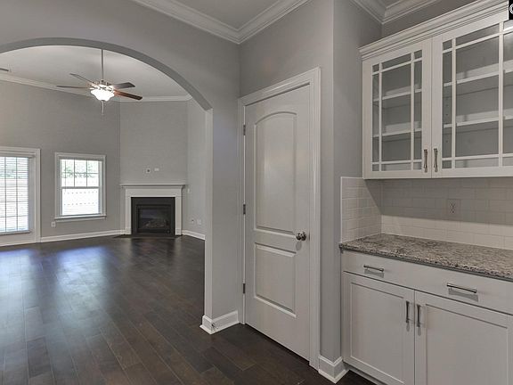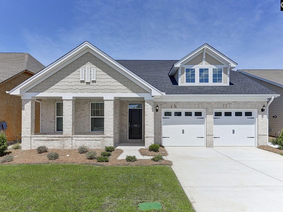 The Allerton with a brick front, is a true one story with 3 bedrooms and 2 baths. Enjoy relaxing on your large rocking chair front porch. Upon entering the foyer you will love the arched entryways with gorgeous Hardwood Floors and Designer Paint Scheme in Passive Gray. The open floorplan lends way to a Butlers Pantry, large kitchen island, upgraded Gas Stove, beautiful White Cabinets and Quartz Countertops overlooking the family room with a cozy Gas Fireplace. The Master Suite has a luxurious private bath with an amazing Barrier-Free Tile Shower, Ceramic Tile Floors and spacious walk-in closet. Enjoy your evenings on your Covered Porch overlooking a beautifully fenced-in backyard in a courtyard setting with Full Yard Irrigation. In addition, the HOA maintains the front yard.