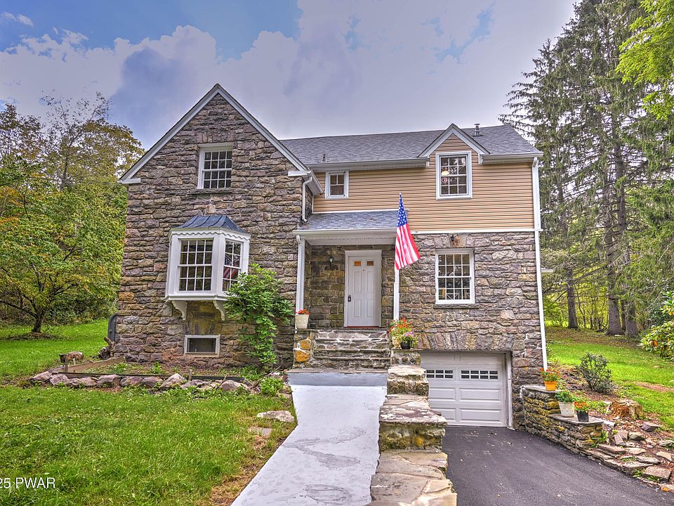 Newfoundland! Set in a private location yet very close to town, this 3-bedroom, 2-bath home is ready for new owners. Enter through the foyer into the spacious eat-in kitchen, which opens to a covered porch overlooking the backyard. The living room offers a wood-burning fireplace and access to an enclosed 4-season room, while the dining room features built-in bookcases and serene backyard views--perfect for entertaining. Upstairs, you'll find a large primary bedroom with a full bath, two additional bedrooms, a renovated full bath, and a laundry area. The basement includes a workshop, utility/storage area, and direct access to the attached garage. Updates include a newer roof and siding (2020), new water heater, new toilets, a recently paved driveway, plus quick access to Route 84 and Wallenpaupack South Elementary School. Two lots are included, totaling 0.51 acres.