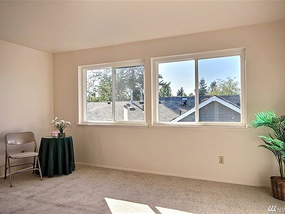 Top floor unit w.Mt Rainier view from bedroom! Top floor offers great natural light, open dining/living spaces. Nice Kitchen is efficient w.south view window, trash compactor. Master bedroom has private bath, 2 closets. 2nd BR has a walk in closet. 2 full baths, new vinyl windows, newer washer/dryer in unit. Freshly painted, new carpeting, secure garage parking. Well-managed Assn, allows 2 pets up to 25#. No rental cap, No assmt. Easy access to Greenlake/Greenwood amenities, buslines, commute.