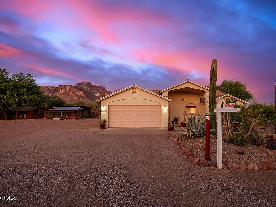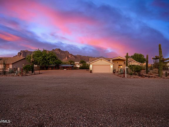 Amazing Horse Property with Spectacular Superstition Mountain Views on a 1 acre lot Featuring a 3 Bedrooms Split Great Room Floor Plan. Vaulted Ceilings and Lots of Plank Tile Flooring & Accent Paint. the Kitchen Features Granite Slab Counters, Hickory Raised Panel Cabinets with crown molding, Basin Sink and Stainless-Steel Appliances, Additional Cabinets in Laundry Room, a Spacious Owners Suite with Owners Bath that Features a Tile Surround Shower, Oversized Secondary Bedrooms, Covered Patio with Fenced Yard. Separate Chicken Coops and Storage, there are 3 horse corrals with automatic watering, an arena and tack room & hay shed. New roof and AC in 2017. Easy access to walking & riding trails. Amazing Views!