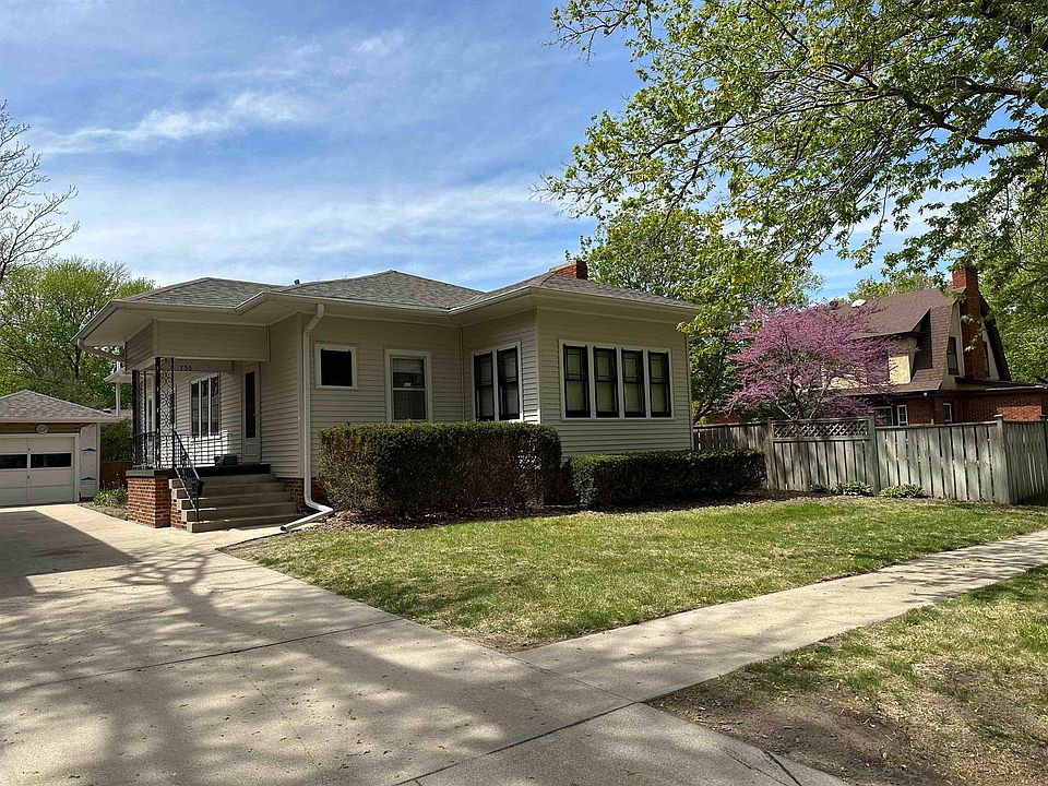 Charming 2 bedroom 2 bath bungalow style home featuring a sun room, breakfast nook, original wood work, full basement, single detached garage. New roof and siding, water heater, interior recently painted. Fenced yard, underground sprinklers. Located close to Heartwell Park and Hastings College. PRESENTLY TENANT OCCUPIED, NEED NOTICE PLEASE.