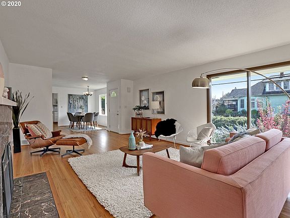 Mid-century modern gardener's paradise! Perched high in close-in Sabin. Main-level living w/beds, living spaces & office on same floor + unfin basement w/endless potential. Open great rm includes living/dining rm w/hrdwod floors, lrg picture windows & a marble surround wood-burn frplce. 2 outdoor spaces - flat side yard w/planter boxes + private patio & deck. 5 min to downtown + close to Whole Foods/New Seasons, parks, library & more! Btwn Mississippi, Alberta & Williams entertainment districts. [Home Energy Score = 2. HES Report at https://rpt.greenbuildingregistry.com/hes/OR10183382]