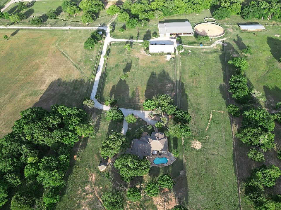 Bring your cutting and reining horses or bucking bulls to this beautiful treed and quite equestrian ranch located on Old Millsap Road. Gorgeous 3000+ sqft updated 3 Bedroom 2.5 Bath rock home with pool on 44.78 acres with covered and lighted arena and attached 8 stall barn. There is a 120 ft round pen and a smaller breaking pen, numerous turnouts and paddocks with shelters and all with water. 100x40 equipment barn and shop with a small bathroom, 100x40 hay storage barn and 3 beautiful improved coastal hay fields. Property is Ag exempt.