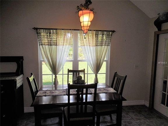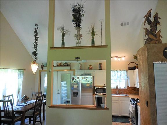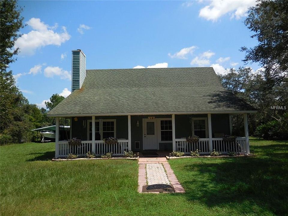 This charming three bedroom, two bath home is located in a quiet corner of Deltona, and it sits on a very private one-acre fenced lot with two pole barns and a cozy front porch. Inside, the home features a great room with soaring ceilings and a large fireplace and features lots of ceramic tile and thermal windows. The spacious kitchen features newer stainless steel appliances, and there is a laundry room adjacent, also. Upstairs, the master suite offers terrific privacy and nice views from the window. If you're looking for a little peace and tranquility without giving up the conveniences of city living, look no further. This could be it!