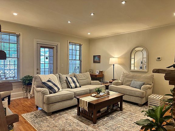 ........front porch swing! Kitchen has stainless appliances, quartz counter tops and shaker style cabinets! Primary bath has brand new contemporary fixtures with great layout. Other bath has a tub/shower combo. This duplex has its own reserved, off-street parking area. Beautiful laminate hardwood flooring complements this spacious home along with a comfortably large screened front porch with comfortable swing overlooking the whole street.