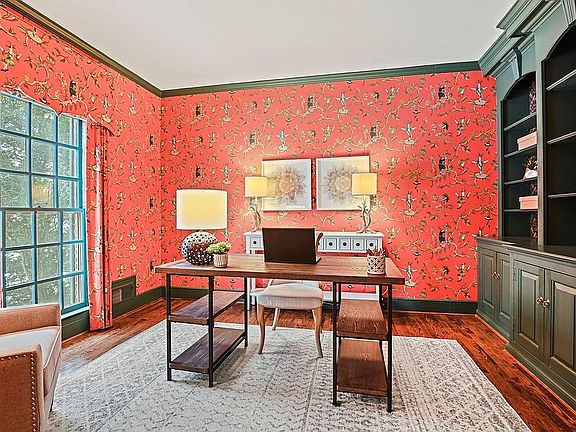 The exterior of the home is equally impressive, with a beautifully landscaped backyard, a slate patio overlooking Scott’s Run Nature Preserve, and a generator for added peace of mind. With its stately brick facade and lush curb appeal, this home is as beautiful outside as it is within.