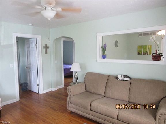 Sharp ranch! Living room w/hardwood floors leads to eat-in kitchen w/updated white cabinetry, ss sink and countertops including all appls! 2 bedrooms with hardwood floors and ample closets! Updated full bath w/ newer vanity, toilet and premier vinyl plank flooring! Nice sized laundry/mud room and washer and dryer stay! Detached 1.5 car garage built in 2008! Vinyl siding is one year old and roof is 3 years old! Newer windows, flooring, cabinetry, lighting, ceiling fan, interior and exterior doors! Nicely landscaped yard and patio! See this one today!