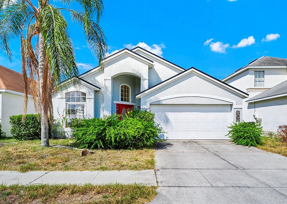 Welcome to 735 Riggs Circle. This 4 bedroom 2 bathroom pool home is in Lake Davenport estates. This home boasts an open floor plan, complemented by a separate formal dining room and living room. The spacious eat-in kitchen includes an island, perfect for family gatherings. The large master bedroom features a walk-in closet and an en-suite bathroom with a garden tub. Ideal for a large family, this residence is located in a community that offers amenities such as a pool, tennis court, basketball court, and playground. Additionally, short-term rentals are permitted within the community. Close to Disney World and all Orlando attractions. Roof is approx 10 years old, HVAC approx 5. Solar panels are paid off.