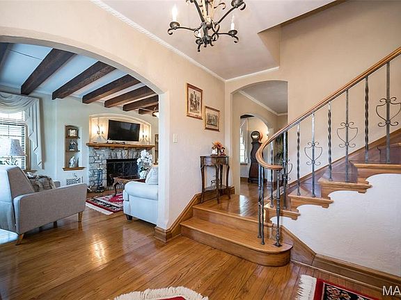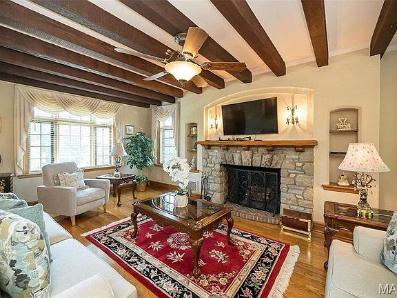 Historic character combines with incredible views, 4 sides brick and stone! This amazing home, built in 1932, was the original estate for what is now Chateau De Parc. Reminiscent of St Louis Hills or Old Webster, there is a sweet timelessness to this property, with hardwood flooring, art glass windows, solid wood doors, turned stairway, light filled formal living room with beams and a masonry fireplace. Formal dining for memorable meals. Kitchen has granite counters, center island, opens to a morning room you will treasure! Main floor office with 2 walls of windows. Gleaming hardwood upstairs with 3 large bedroom and 2 full baths. This home is positively spotless and the love it's been shown is around every corner! True to a European tradition, a second full kitchen in the basement ensures the ability to host a crowd. The expansive patio affords inspiring views and features an authentic pizza oven to be enjoyed year round. Timeless quality, this is a rare opportunity! Located in the desirable Lindberg school district with great highway access.