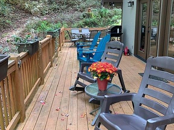 This updated modified A-Frame is a nature-lovers paradise. Perfect for a small family or a vacation home. The great room features floor-to-ceiling windows at the front gable looking out to a wooded yard. Also included on the main level are the kitchen, two bedrooms, two full baths and laundry. Upstairs there is a good- sized carpeted bonus room and a loft overlooking the living area and also with a view of the wooded yard. Two sizeable storage areas are also upstairs. The spacious new deck has enough room for you, your family and friends. The home includes a double lot, totaling just under an acre, so there's plenty of privacy. Improvements made since 2018 include a new dual-fuel heating/cooling system, new deck, new roof, new doors and windows in great room, exterior paint, updated bathrooms, refinishing of all wood floors, grading, landscaping, and more. Amenities in Sherwood Forest include 5 lakes, 25 miles of hiking trails, par 3 golf course, swimming pool, tennis courts and a community garden. With over 1,000 wooded acres, including over 300 acres of green area, this Audubon Community is truly unique, and is a short 15 minute drive to the town of Brevard. Sherwood Forest is an active community with many opportunities to volunteer and otherwise get involved. According to Sherwood Forest regulations, homes purchased cannot be used as rental property for the first 3 years of ownership.