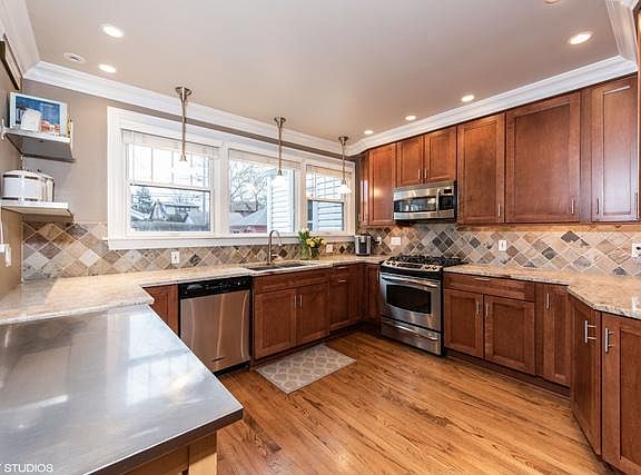 Come by and see this masterfully updated turnkey 3 Bedroom & 2.5 Bathroom Colonial located on a oversized lot on One of Park Ridge's most beautiful streets! Home Features include: 2 Car Garage, Updated Windows, Hardwood Floors, first floor office w/ French style doors, separate Dining Room, gorgeous built-in cabinetry, can-lighting, crown molding, updated kitchen with granite countertops and SS appliances. The list goes on! Exterior is beautifully landscaped with brick patio overlooking large yard. Come enjoy Park Ridge's wonderful nightlife, home is very near Uptown's Metra train station, restaurants, & shopping district. Roosevelt Elementary School is 3 blocks away. A must see!