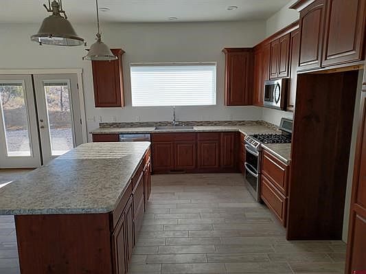 Beautiful hilltop home with great mountain and valley views. Move-IN READY! Located in the very desirable Deer Creek Village golf course subdivision. 3 bedroom 2 bath great room design with island kitchen. Dining area with view window. Granite counter tops with plank tile flooring. Large master suite with extra closet space and built in cabinets. New carpet in all bedrooms. Large bonus/office space above the garage with a great view. Two car garage with extra side space and entry door. Irrigation system in place and a security system is included. This is a very well appointed home with great views all around and a very private back yard. Walking distance to he Cedaredge golf course and town center. Home is located just 15 minutes from the grand Mesa with unlimited recreation. Cedaredge is known for its wonderful climate and ease of living.