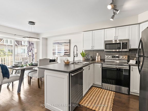 Location meets lifestyle in this beautifully maintained end-unit townhome in West Pickerings desirable Woodlands community. Enjoy extra privacy and sunlight, located on a quiet cul-de-sac with quick access to Hwy 401 and the GO Train for an easy commute. Top-rated schools, parks, shopping, and restaurants are all nearby and its just a short drive to Rouge National Urban Park and Frenchmans Bay waterfront trails.This fully updated townhome provides a bright and inviting layout with an open-concept main level featuring modern hardwood flooring, crown moulding and pot lights. The updated kitchen features ample cabinetry and a breakfast bar which extends into the dining area with a walkout to a spacious deck. Upstairs, you'll find three generously sized bedrooms, including a comfortable primary suite with a walk-in closet and 4 pc semi-ensuite bathroom, and convenient upper-level laundry. The finished lower level provides additional living space with a look-out window, kitchenette, and 3 pc bathroom. Featuring a walkout through the garage, the basement can potentially be transformed into a self contained unit or in-law suite. Furnace, A/C, and hot water tank updated in 2020 (Owned). Whether you're a first-time buyer, downsizer, or growing family, this townhome offers exceptional value in a sought-after location.