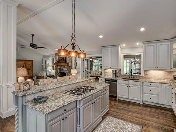 - Interior: Ceilings - Vaulted, Ceilings 9 Ft Plus, Double Vanity, Gas Logs, Separate Shower, Walk-in Closet, Skylight, Tile Bath, Hardwood Floors, Wet Bar, Exposed Beams