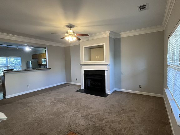Open layout, updated kitchen with stainless steel appliances, fireplace in the living room, large closets, and a deck backing up to a private green space. Two-car parking restriction via HOA.