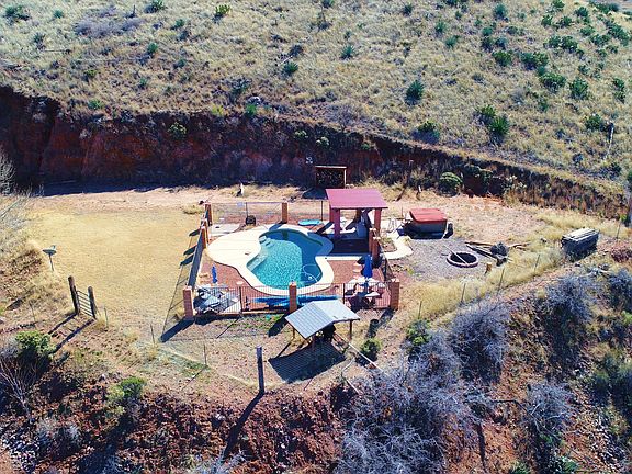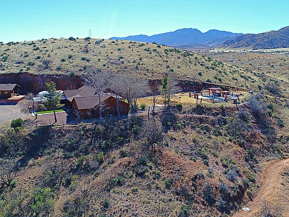 This open and spacious, one story, log cabin is located on 10 acres at the base of the Dragoon Mountains with panoramic views of Grape Vine Canyon and state and federal land (west side). The main home is 2949 sq. ft, has 3 bedrooms, 2.5 baths. Master bath has jetted tub, double sinks and separate shower. Also new wood ceramic tile in the master bedroom. The huge bonus room could easily be a 4th bedroom, wood burning fireplace, granite counter-tops in the open kitchen, walk in pantry. Skylights abound letting in wonderful natural lighting. The guest house is 782 sq. ft with 2 bedrooms and 1 bath, pellet stove, large windows to take in the views, surrounded by a large new deck for relaxing and enjoying the out-doors. The front yard has artificial grass. Enjoy the views from your built-in swimming pool (Pebble Tec) with an outside covered kitchen area. The pool area is surrounded by a wrought iron fence. There is a natural pond and shooting range. At night under the magnificent stars you can enjoy roasting marshmallows in the fire-pit and a take a dip in the hot tub! 1 hour 20 minutes from Tucson International Airport, 1 hour from Douglas, 1 hour 15 minutes from Bisbee, 44 minutes from Benson.