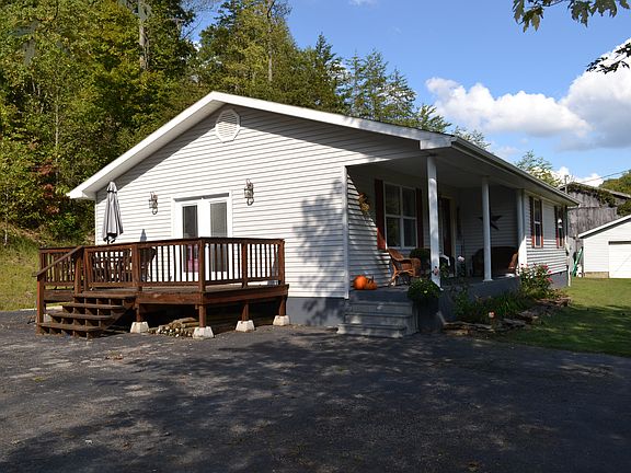 REDUCED! This is a really, really nice 3 bedroom 2 bath all electric ranch secluded ranch home that sits upon a hill and has been reduced. Enjoy the beauty of the mountains from your covered front porch. Very pretty flooring and white cabinets. Seller replaced the HVAC (4,l000), duct work, flooring, ext. & int. lts, stain & paint on porches, new paint & trim throughout the house, air vents & new thermostat with new wiring. If you're looking for a peaceful, quiet, private home, you've found it. There's lots of trees, too. The long paved driveway leads to a very spacious parking area for numerous vehicles. There is a detached garage and a carport. This home will delight you!