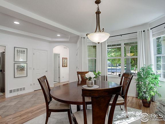 GOLF VIEWS! Situated on the 14th tee of the Fox Hill Golf Club, this comfortable home boasts designer updates and the finest finishes. A welcoming, enclosed front porch greets your arrival to this meticulously maintained home. Upon entry, your eyes will be drawn to the wood flooring that guides you through the main level. The kitchen is outfitted with new appliances, including an induction cook top, a new wet bar. Open to the living room with a sunny breakfast nook, this space is the ideal place to gather. Unwind in the ultra-private back deck with a shady pergola. The secluded hot tub is the perfect place to savor Colorado at nightfall. The primary suite offers high ceilings and an abundance of storage space with 3 closets. The sumptuous 5 piece bath features a soaking tub & new state-of-the-art shower. The secondary bedroom on the main level would make a great home office and includes a relaxing Murphy Bed. The lower-level rec room has a wet bar and a generously sized guest room. Feel at ease knowing the systems will last! All new HVAC, in addition to many upgrades, tops off this ideal home! You will love the low-maintenance living that this patio home brings! Enjoy a huge yard with no upkeep! Unbeatable location in a friendly neighborhood close to health care facilities, restaurants, and shopping.