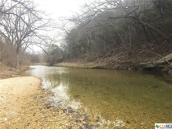 Beautiful and tranquil setting on Coryell Creek. Entire south and southwest side of this property's border is almost a quarter of a mile of creek. The creek bottom is shaded with the gravel beach on your side. To one side of the property is a view of an open field and to the other side a view of a wooded hill just beyond the creek. Deer and turkey are plentiful. Abundance of trees; elms, oaks, pecans, and cedar. Property is fenced on 3 sides, creek on the other. Two storage buildings in good shape and a portable carport. The house needs work, water well in place. How often does a listing come up with a creek on small acreage just a few minutes from town, NOT OFTEN!