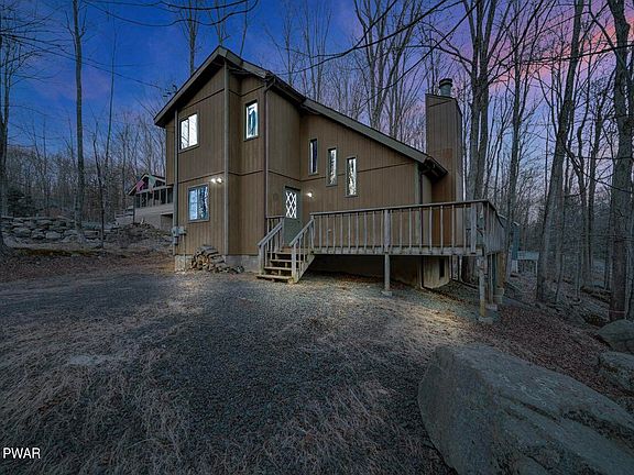 Located in the Hideout,the perfect getaway located in The Northern Poconos, just two hours from the NYC and Philadelphia areas. This 3 bedroom, 2 bath home has a nice floor plan for the best use of space. One bedroom is on the 1st floor for easy access. It's located on an oversized wooded lot on a bend in the road which offers privacy. There are two screened in porches, one on each level, a large wrap around deck and its within close proximity to amenities. The main living area has cathedral ceilings, a brick fireplace and access the rear deck. There's knotty pine ceilings on the main level too., Beds Description: 2+BED 2nd, Beds Description: 1Bed1st, Baths: 1 Bath Level 1, Baths: 1 Bath Level 2