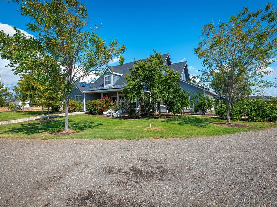 Welcome and relax in this beautiful custom home that has it ALL! Starting with the stunning 13.5 Acres with amazing views of the mountains and Sutter Buttes on a clear day, also boasting amenities like 300 potential income producing Mandarin trees, 40' x 60' shop with full bath and large roll up doors, large circular pin for your horses, pond stocked FULL of bass and crawfish. Inside the amenities and details continue with a FULL Master Suite downstairs and an addition bedroom, office (potential bedroom) full bath and inside laundry. The living room has a statuesque propane log fireplace that reaches to the top of the stunning ceilings. This chef's kitchen boasts double ovens, built in microwave, top tier oven/range with warming rack, ample counter space and a massive pantry under the stairs. Upstairs you will see 2 large rooms split by a full jack and jill bath. Home is built with Arxx concrete and foam construction walls & SOLAR! Country living 15 min to Target & 25 min to Beale AFB