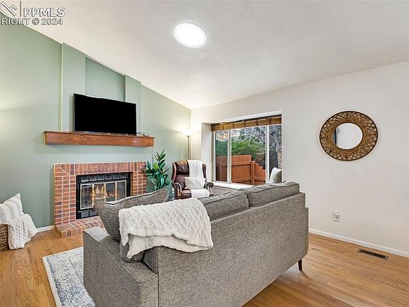 Welcome to the desirable Northwest! This ranch-style home, situated west of Centennial Blvd, boasts hardwood floors throughout the entirety of the main level. Step inside to discover an inviting open floor plan, seamlessly connecting the kitchen and living room. Vaulted ceilings amplify the spaciousness, complemented by a charming brick fireplace in the living area. The expansive eat-in kitchen flaunts stunning granite countertops and ample cabinetry, inviting all kinds of culinary adventures with loved ones. Step outside onto the generously sized deck, extending your living space into the fully-fenced backyard—an ideal setting for indoor/outdoor entertaining. The basement offers great additional space, including a sizable third bedroom and family room, perfect for hosting gatherings. Plus, enjoy peace of mind with a new roof installed in 2021. Nestled amidst the foothills of Colorado Springs, this home offers easy access to various trails, promising endless adventures right at your doorstep. Don't miss out—schedule your showing today before it's gone!